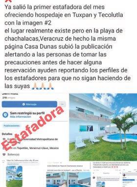 A través de redes sociales se ha lanzado una alerta a turistas y visitantes sobre una creciente ola de estafas en la renta de hospedajes Tuxpan y la región, así como otros destinos turísticos.