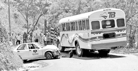 de color blanco, con leyenda y logotipo de Tecate, se estampó contra un autobús de pasajeros de la línea Autotransportes Banderilla (ATB), con número económico 169, el conductor del automóvil resultó gravemente herido, por lo que fue atendido por paramédicos del Escuadrón Nacional de Rescate, quienes le brindaron la atención prehospitalaria y posteriormente, lo trasladaron al Hospital Regional de Misantla. Personal de Tránsito Municipal se presentaron en el lugar del accidente para realizar las investigaciones correspondientes y deslindar responsabilidades, las unidades fueron enviadas al corralón oficial.