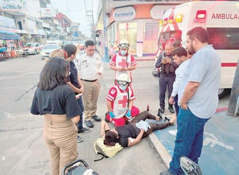 tó con lesiones en una mano y en las extremidades inferiores, por lo que fue auxiliada inicialmente por transeúntes y posteriormente valorada por paramédicos de la Cruz Roja. Afortunadamente, no requirió traslado a un hospital, recibiendo únicamente curaciones en el lugar. Elementos de la Policía Municipal acudieron al sitio, así como personal de Tránsito y Vialidad; sin embargo, este último no intervino debido a que los involucrados decidieron llegar a un acuerdo entre particulares.