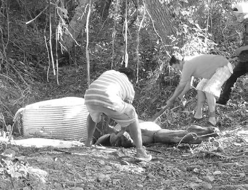 una reja de plástico hallaron los restos humanos de una persona del sexo masculino, quien tras ser asesinado fue hecho pedazos y abandonado dentro de la reja.