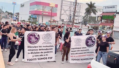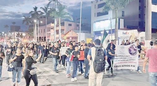 Trabajadores de los Juzgados Federales asentados en esta ciudad, marcharon la tarde de este martes, para pedir a los Senadores de la República que voten en contra de la Reforma