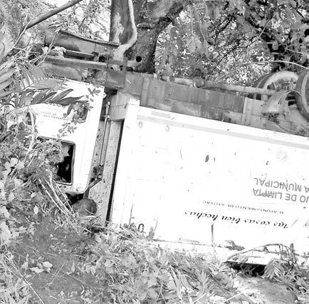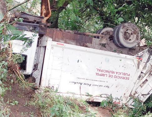 Camión sufre falla, sale del camino y acaba con las llantas arriba, en Ixtaczoquitlán. PASE A LA 22