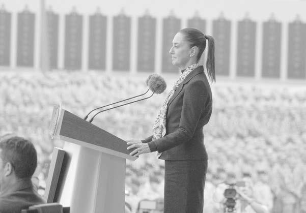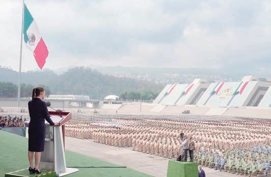 “Seremos perseverantes en la lucha contra el clasismo, el racismo, el machismo y cualquier forma de discriminación. Es decir, haremos de México un país todavía más próspero, justo e igualitario, y seguiremos engrandeciendo la dignidad y el orgullo de ser mexicanas y mexicanos. Fortaleceremos la Guardia Nacional como parte de la Secretaría de la Defensa Nacional y les convocaré para seguir apoyando en la construcción de grandes proyectos estratégicos como los trenes de pasajeros hacia el norte del país y los nuevos puertos. Son y van a seguir siendo los tiempos de las hazañas pacíficas”, manifestó.