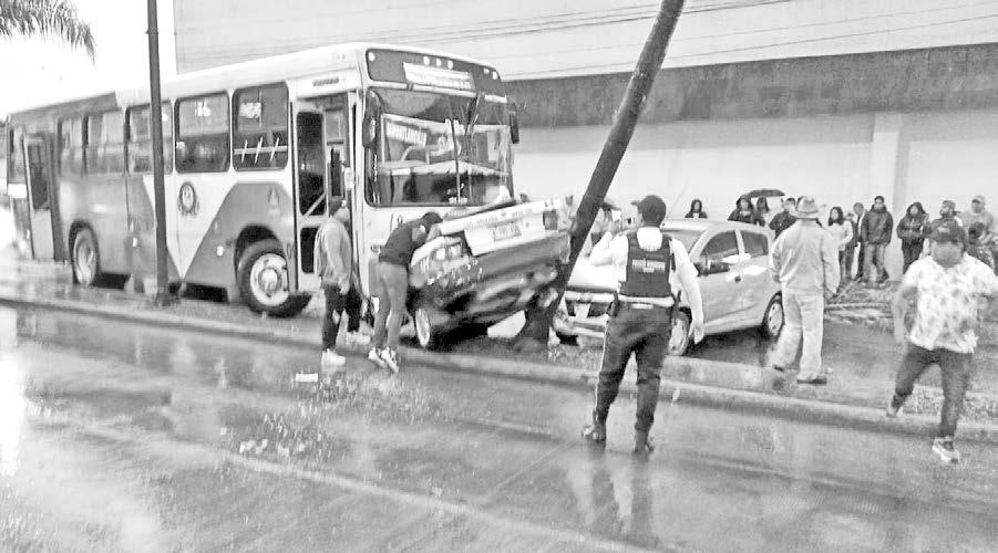 El camión de pasaje también impacto a un automóvil compacto marca Chevrolet tipo Spark de color verde, el cual dio la vuelta y ascendía dicha prolongación; el conductor resultó ileso.
