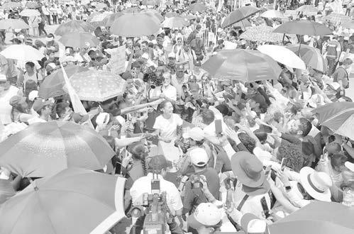 “El Estado de México es el estado que más población tiene en nuestro país y al mismo tiempo es el estado que gobernó tantos años el PRI, que se sirvieron con la cuchara grande del Estado de México y a la población le dejaron prácticamente nada, llegaban a comprar votos el día de la elección y después se olvidaban del pueblo mexiquense’’, comentó al hacer un llamado a defender en las próximas elecciones la continuidad de la 4T.