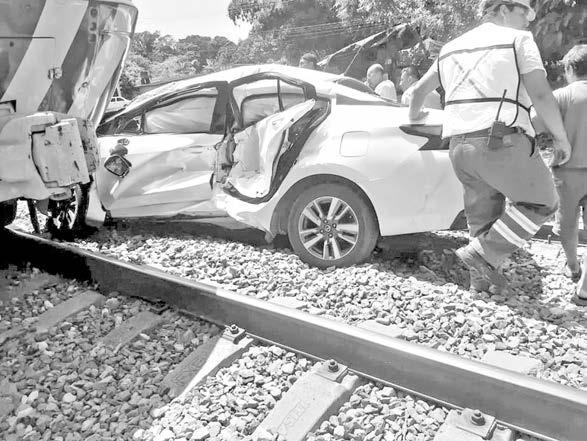 Automovilista intenta ganarle el paso al tren, unidad acaba arruinada, en Chinameca.