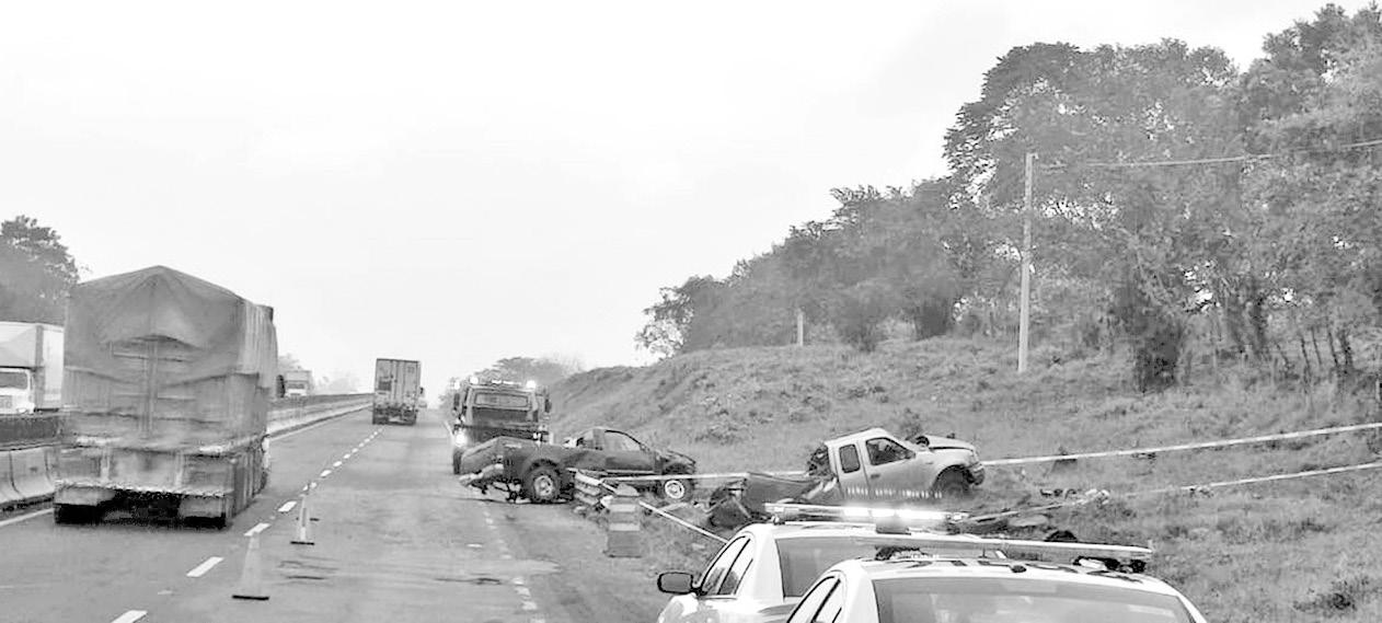 Conductor y copiloto de camioneta, que jalaba a otra, murieron después de volcar, en Acayucan.