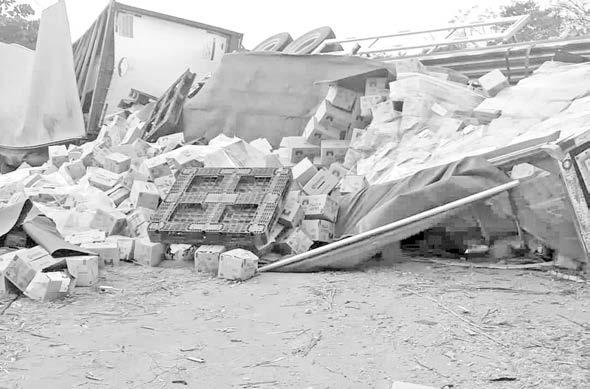 Conductor del tráiler cargado con cerveza fue rescatado al quedar volcado, en Tierra Blanca; hubo rapiña. PASE A LA 22