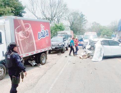 Chofer de auto se detiene en plena carretera federal y fue embestida por un camión, en Tlapacoyan. PASE A LA 21