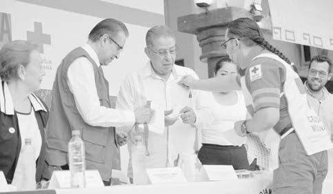 La Profa. Rosa Hilda Gutiérrez Castillo, tesorera; la Lic. María Antonieta Hernández Guerrero, secretaria; el Dr. Inocencio Rolando Martínez Pérez, consejero local de Cruz Roja, la Profa. Haydeé Arenas Ochoa, coordinadora local de Damas Voluntarias, y el Dr. Jesús Fomperoza Torres, director de Salud y Asistencia Pública municipal.