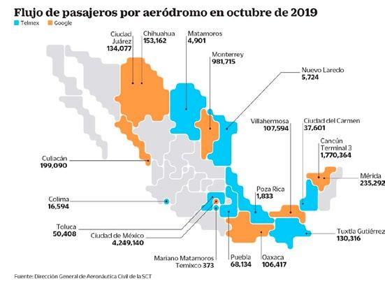 En tanto, Google Stations, la red de wifi gratuito de la empresa estadounidense, ofrece internet en 23: los aeropuertos internacionales de Ciudad Juárez, Chihuahua, Reynosa, Culiacán, Torreón, Monterrey, Durango, Mazatlán, Zacatecas, San Luis Potosí, Tampico, Veracruz, Ciudad de México, Zihuatanejo, Acapulco, Oaxaca, Huatulco, Minatitlán, Villahermosa, Tapachula, Mérida, Cancún Terminal 3 y Cozumel.