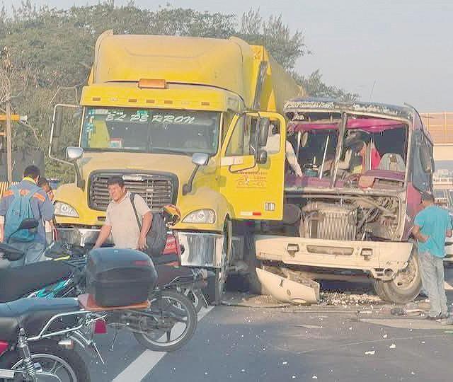 Un muerto y 30 lesionados dejó el choque de autobús contra tráiler, en la carretera Veracruz-Cardel.
