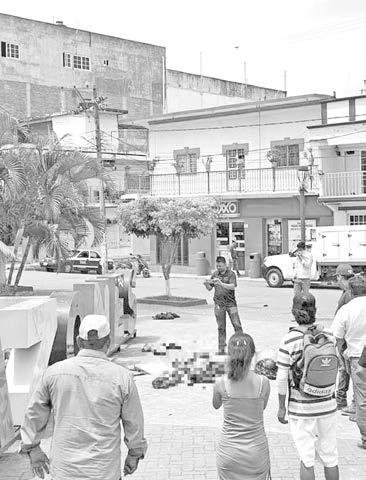 Se reporta que este mediodía hombres armados a bordo de camionetas arrojaron restos humanos de al menos dos cuerpos justo frente al Palacio Municipal de