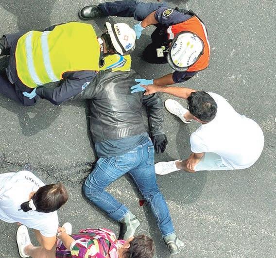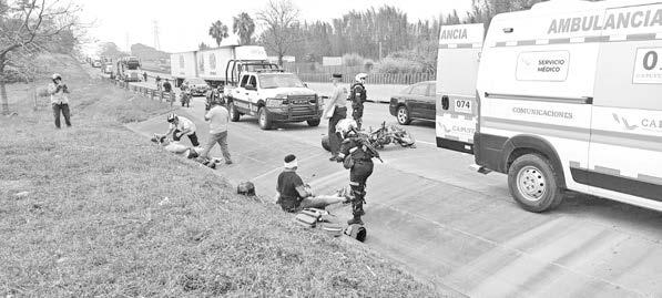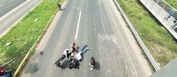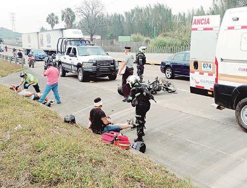 Motocicleta derrapa y ocasiona que dos más colisionaran y de igual forma cayeran, en Amatlán. PASE A LA 22