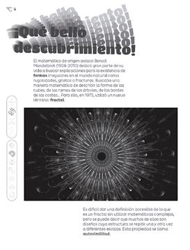 En las páginas 14 y 15 de Múltiples lenguajes, 6o., hay un texto, a la manera de los artículos de divulgación, sobre los fractales: “Yo me dedico a los fractales. Sé que son atractivos visualmente, pero no sé qué le puedan aportar a la formación del alumno en 6o. grado; en la forma en la que los definen también hay errores”, cuenta Valdez y también menciona que la definición de figura geométrica en 1o. es incorrecta porque deja fuera al círculo; y en 3o. se introduce el número Pi sin ninguna referencia al círculo, aunque en 4o. éste ya es definido.