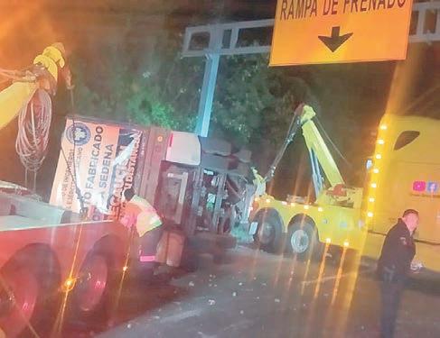 A pesar de que la unidad de carga pesada sufrió el desprendimiento del segundo semiremolque y terminó volcado sobre la vía rápida 2100, por fortuna no hubo víctimas que lamentar.