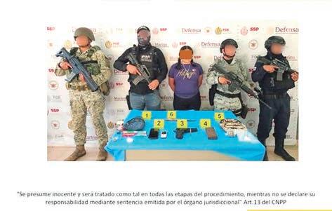 En el lugar, se logró la detención en flagrancia de Estefanía “N”, así como el aseguramiento de hierba verde seca con características similares a la marihuana y piedra cristalina, celulares, una réplica de arma corta, un cartucho útil y un cargador de arma larga.