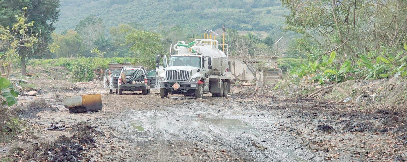 Los habitantes señalaron que, además de no contener el derrame, tampoco se han realizado trabajos de saneamiento, lo que ha provocado una afectación importante al medio ambiente, con presencia constante de hidrocarburo en el suelo y fuertes olores que se perci-
