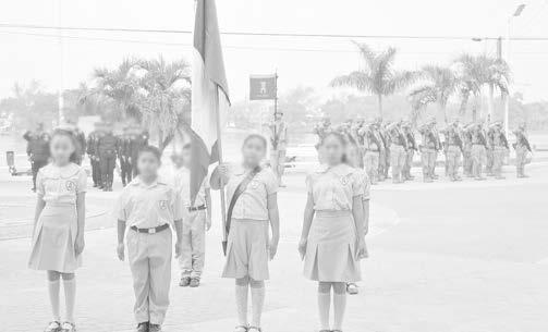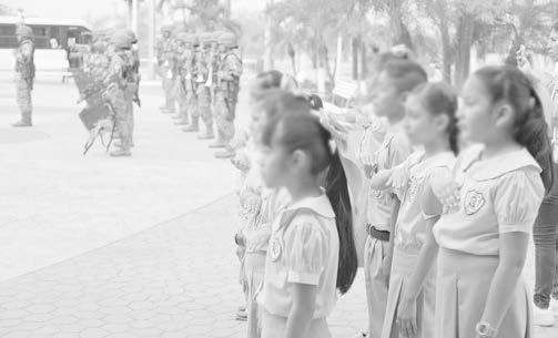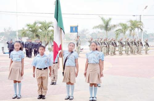 de la primaria “Salvador Díaz Mirón”. Al acto cívico también asistieron padres de familia, personal docente y administrativo de la escuela participante; así como elementos de la Policía Municipal y del 5º Batallón de Ingenieros de Combate de Cerro Azul.