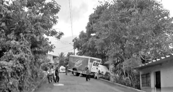 por dónde un camión tipo Torton, de acuerdo a la versión de los vecinos, se atoró con los cables y de arribó un poste de madera, luego se dio a la fuga.