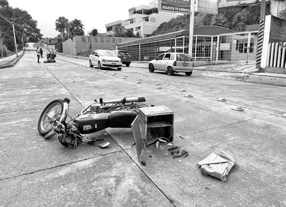 Cuándo bajaba la pendiente procedente de la colonia El Mirador y con destino a la zona centro, empleado de la rosticería El Fogón, a bordo de su caballo de acero, perdió el control y terminó arrastrándose varios metros sobre el pavimento.