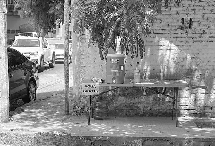 Tuxpan.- Ciudadanos en diversos puntos del municipio se están sumando a la noble causa de instalar frente a sus domicilios o en algún espacio con sombra en la calle de su domicilio, un módulo de hidratación, colocando una mesita con garrafón de agua y vasos para el uso de quienes lo necesiten.