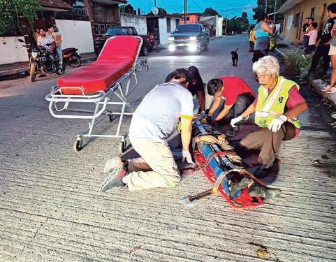 Tras rodar varios metros por el pavimento, personas qué vieron a la víctima lesionada de inmediato solicitaron el auxilio al 911. Personal de Ambulancias Bonilla arribaron al sitio y le brindaron la atención prehos -