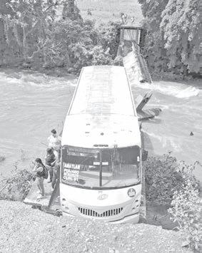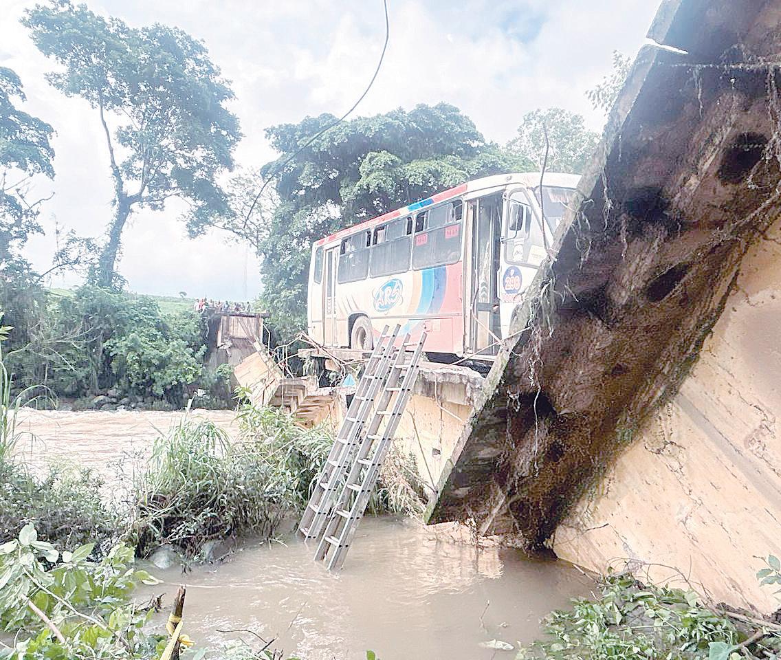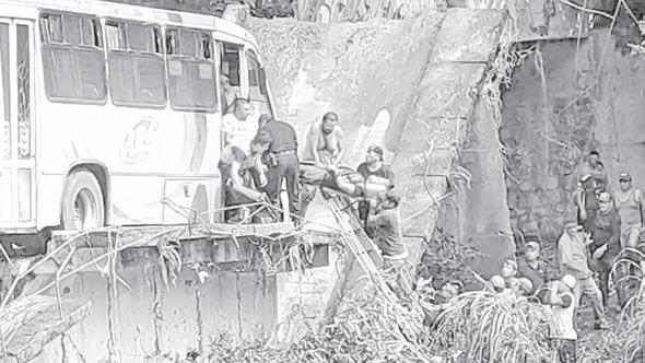 Se fractura puente al cruzar autobús; reportan 1 muerto y 6 lesionados