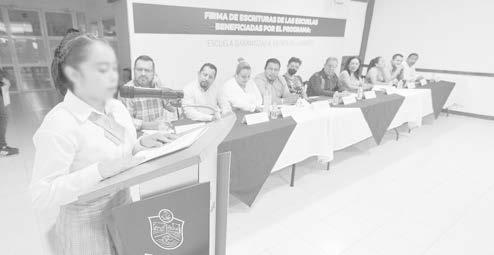 “Hoy me da mucho gusto participar en esta firma. La falta de escrituras era una limitante para que sus escuelas pudieran acceder al otorgamiento de apoyos en materia de infraestructura física y equipamien-