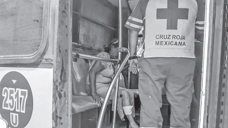 Cuando pasaban por la avenida Dos Bahías, que el operador de la unidad pasó sobre un bache por accidente, por lo que el hombre y la mujer chocaron por accidente, por lo que la señora identificada como María Yaret