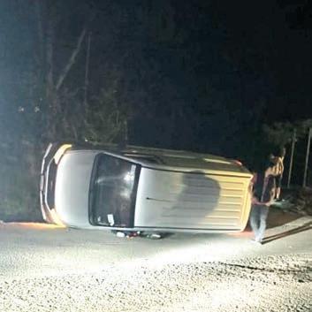 Aparatosa volcadura se registró sobre la carretera estatal Misantla -kilómetro 9, lugar donde una camioneta tipo SUV, terminó volcada sobre la carretera sobre su costado.