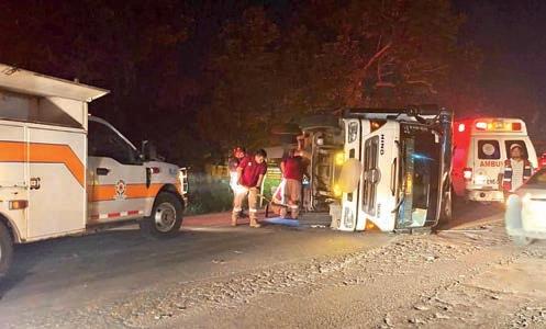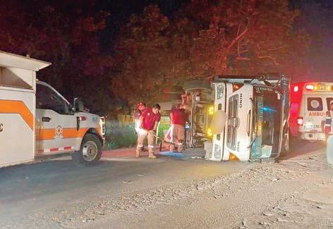 El accidente ocurrió frente a la primaria de la comunidad de Santa Margarita, por dónde dicha unidad presumiblemente a consecuencia de una falla mecánica terminó por volcarse sobre su costado.
