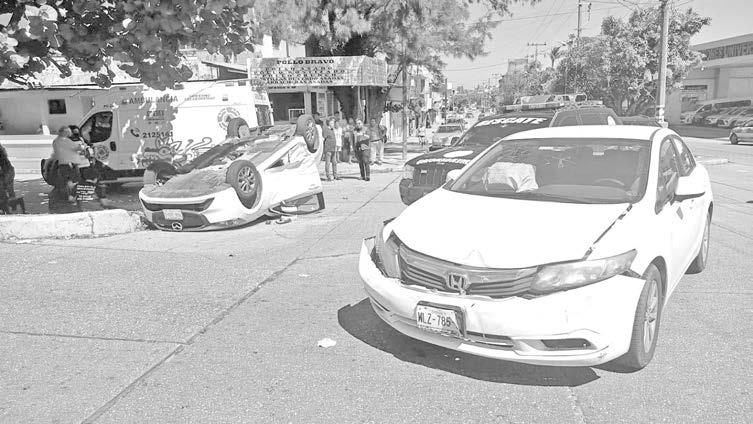 A pesar de que uno de los automóviles terminó volcado y ambos con las bolsas de aire expuestas, no hubo personas lesionadas de gravedad. El accidente se presentó cuando el