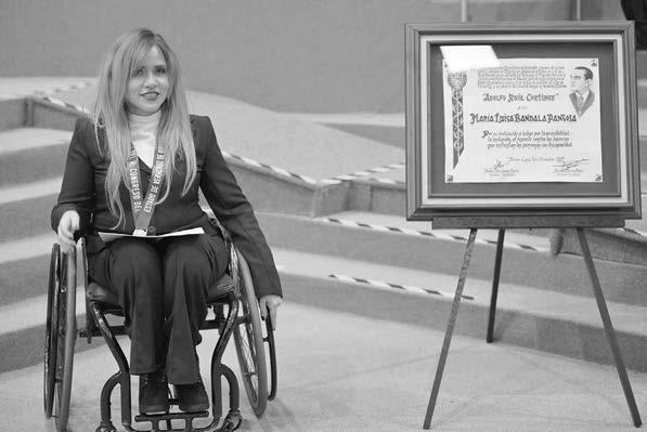 Nacida con mielomeningocele e hidrocefalia, enfrentó 13 cirugías desde temprana edad. A partir de esa experiencia, ha impulsado acciones en favor de los derechos de las personas con discapacidad.