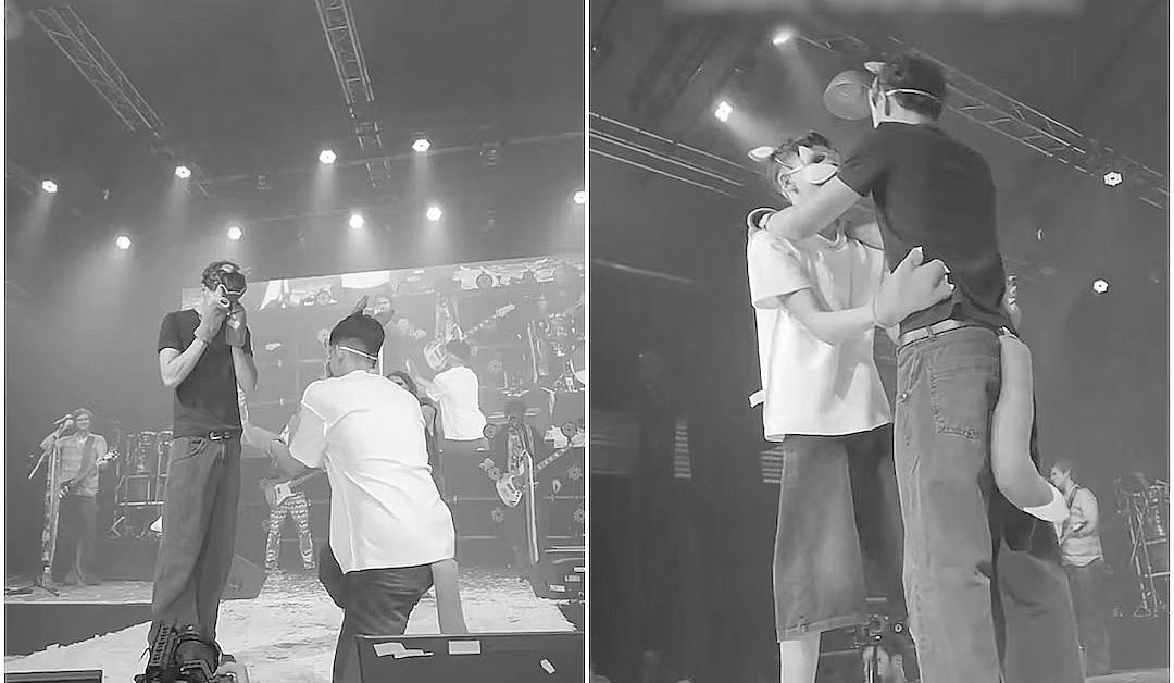 El romántico momento sucedió arriba del escenario, donde la pareja con máscara y colas de zorro se comprometieron mientras sonaba una de las canciones de la banda.