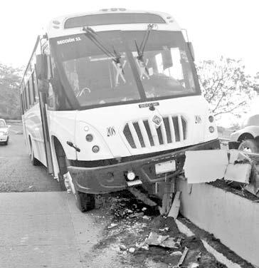 El primer hecho se presentó en el puente Caracol en el acceso al puerto sure ñ o c uando una unidad 208 de la secci ó n 1 1 del sindicato petrolero se impactó contra el camellón central. De acuerdo con el conductor, la neblina provoc ó que se empa ñ a ra su parabrisas, por lo que ante la poca visibilidad se estrelló contra el muro de contención, en el vehículo solo iba el chofer.
