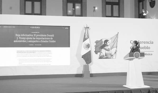 La Jefa del Ejecutivo Federal explicó que la orden ejecutiva que firmó ayer, 26 de marzo, el presidente Trump sobre las tarifas a autopartes y automóviles contiene dos cláusulas en las que se establece que las piezas que provienen de los países que forman parte del Tratado entre México, Estados Unidos y Canadá (T-MEC) estarán libres de aranceles las importaciones de automóviles. “Vienen dos cláusulas especiales para los países que somos parte del Tratado Comercial México-Estados Unidos-Canadá: ’A los importadores de automóviles, bajo el Acuerdo de Estados Unidos-México-Canadá, se les dará la oportunidad de certificar su contenido estadounidense y se implementarán sistemas para que el arancel del 25 por ciento solo se aplique al valor de su contenido no estadounidense’. Después, hace otro elemento, aquí mismo, dice: ‘Las piezas de automóviles que cumplan con el T-MEC permanecerán libres de aranceles hasta que el secretario de Comercio, en consulta con la Oficina de Aduanas y Protección Fronteriza de Estados Unidos (CBP), establezca un proceso para aplicar aranceles a su contenido no estadounidense’”,