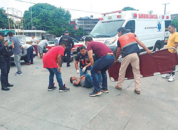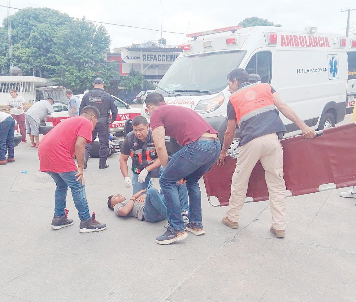 Motociclista se estrella contra un taxi, en Tlapacoyan; herido fue llevado a un hospital.