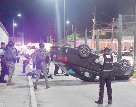 Automóvil se sube a camellón central, choca contra un poste y vuelca, en Orizaba. PASE A LA 22