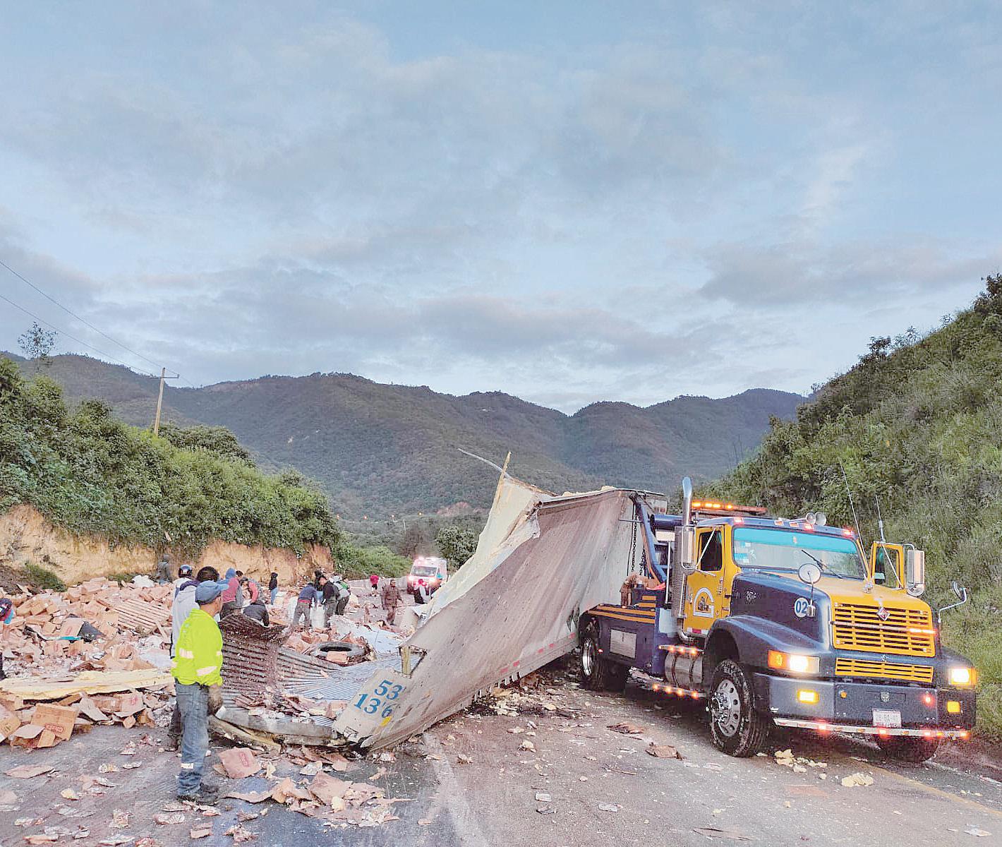 Volcadura de camión deja pérdidas millonarias; personas acapararon mercancía que quedó dispersa, en Maltrata.