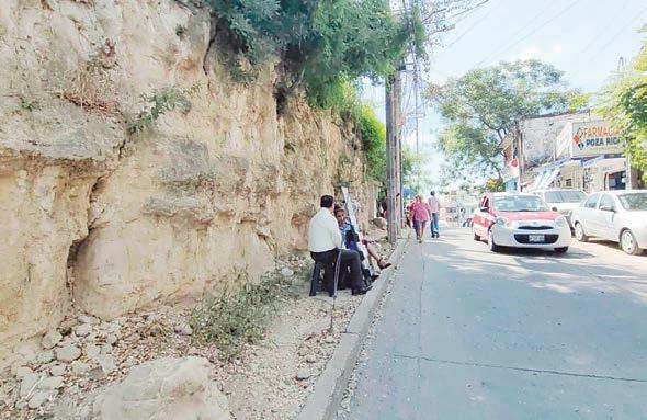 Derrumbe del cerro próximo al Hospital, ha cubierto las aceras, al grado de orillar a peatones a bajar al carril vehicular.