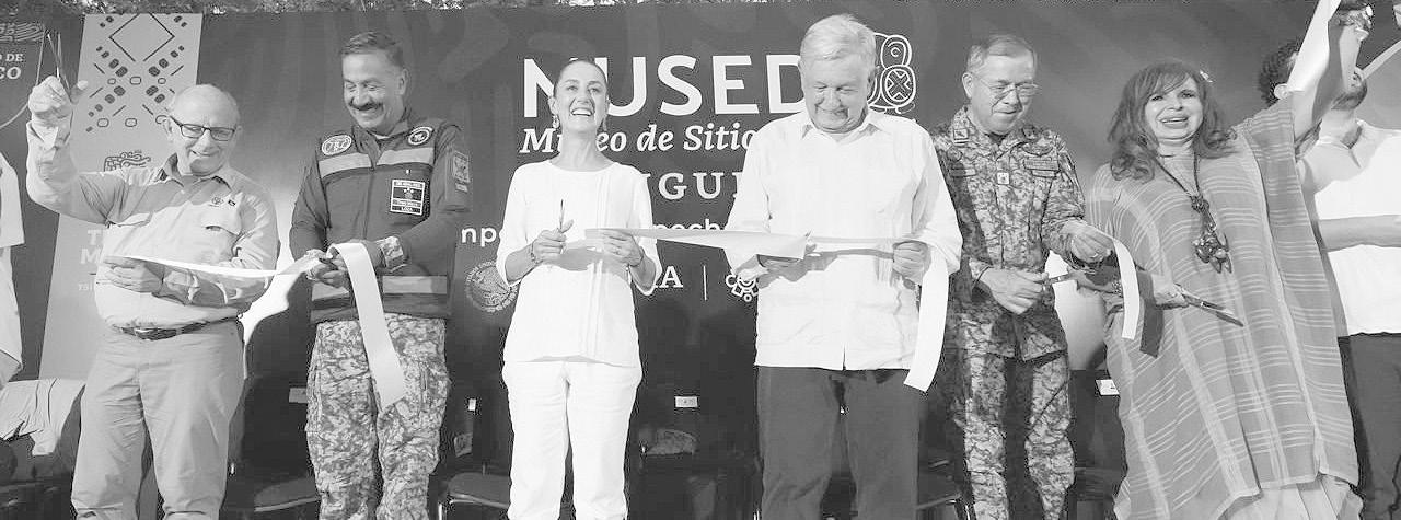 Campeche.- “Vamos a dar continuidad al Tren Maya, a los planes de justicia, a seguir rescatando estos hermosos sitios arqueológicos, la atención y construcción de nuestro destino junto a nuestro pueblo diverso y alegre”, fue el compromiso de Claudia Sheinbaum, virtual Presidenta electa, durante la inauguración de Mused, museo de sitio de Edzná, en donde recalcó que consolidar la obras y proyectos de la Cuarta Transformación fue lo que eligió el