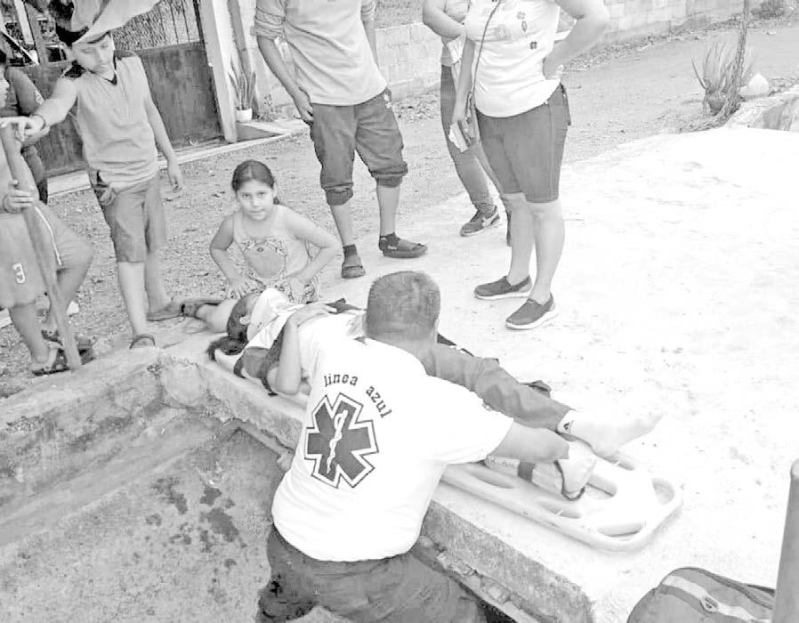 tura de fémur y rotula derecha, además de golpes contusos. Paramédicos de Ambulancias Línea Azul con Base en Cardel, le aplicaron los primeros auxilios a la menor.