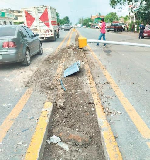Cabe mencionar que el motociclista asegura que el poste cayó cerca de él y a punto estuvo de perder la vida, en caso que le hubiera caído encima, resultó con una herida en la rodilla y probable fractura de clavícula.