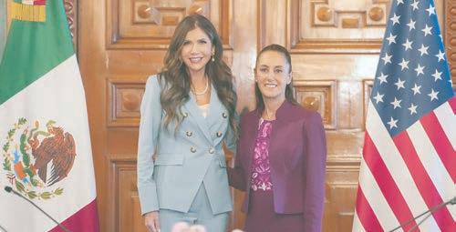 En el marco del diálogo continuo entre México y Estados Unidos, la presidenta Claudia Sheinbaum Pardo recibió en Palacio Nacional a la secretaria de Seguridad Nacional de Estados Unidos, Kristi Noem.