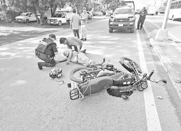 Lesionado y poli contundido resultó Rafael tras accidentarse cuando manejaba a exceso de velocidad una motocicleta.