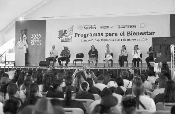 Transformación, 13.5 millones de mexicanas y mexicanos salieron de la pobreza gracias al aumento del salario mínimo, la continuidad de los Programas para el Bienestar y la implementación de tres nuevos apoyos durante su gobierno: la Pensión Mujeres Bienestar, la Beca Rita Cetina y Salud Casa por Casa. Anunció que en Comondú se pondrá en marcha un programa de recarga de acuíferos para apoyar a las y los productores, agricultores y pescadores de la región; que se suma a la construcción de la Presa el Novillo, una Planta de Tratamiento en Los Cabos, un acueducto de Santa Rosalía a Palo Verde y otros programas sociales como Vivienda