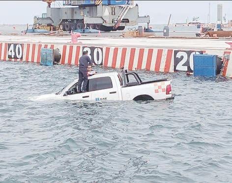 A bordo de camioneta, trabajadores del SAT se hunden en aguas del malecón, en Veracruz. PASE A LA 22