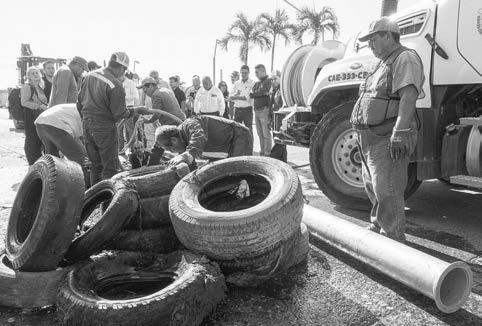 llantas de diferentes medidas, 12 toneladas de basura, piedras, maleza y 257 metros cúbicos de residuos sólidos. El Gobierno de Tuxpan y la Oficina Operadora de CAEV, han venido trabajando en forma coordinada en las colo-