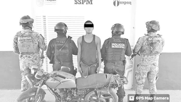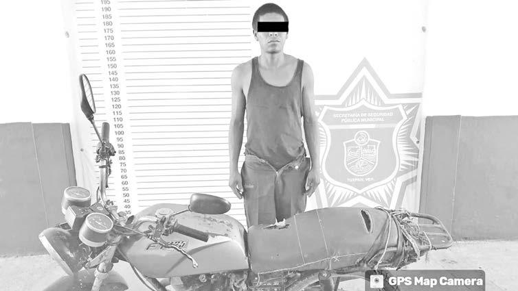 Personal de SEMAR en labores de seguridad pública y Policía Municipal de Tuxpan, detuvieron a un sujeto con una motocicleta con el NIV alterado y cuya propiedad no pudo acreditar.